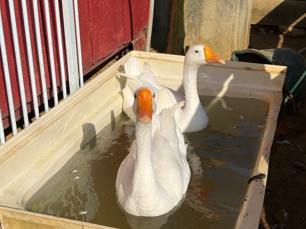 ヒナの頃に牧場にきたガチョウのスイティとソルティ♡兄妹でとてもなかよしです。