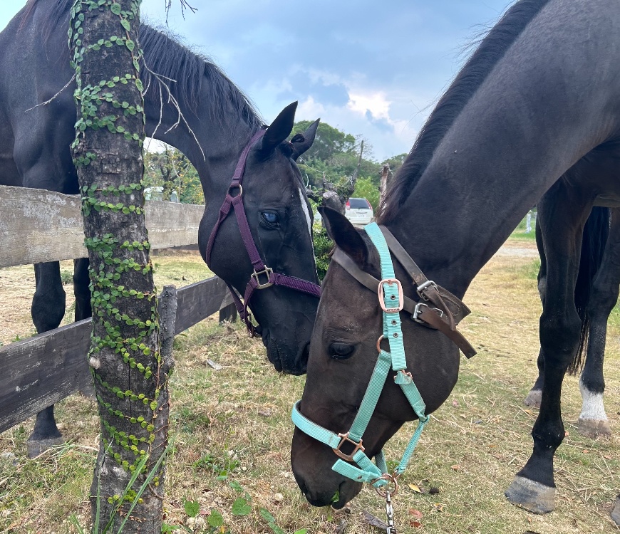 ちゅらんには3頭の元競走馬が穏やかに余生を過ごしています。今回は左のポイントくんと右のスパークルくん、そしてアンちゃんの紹介です♡みんなこのようにとても仲良しですよ♡元競走馬とは思えないのんびり屋さんたちです
