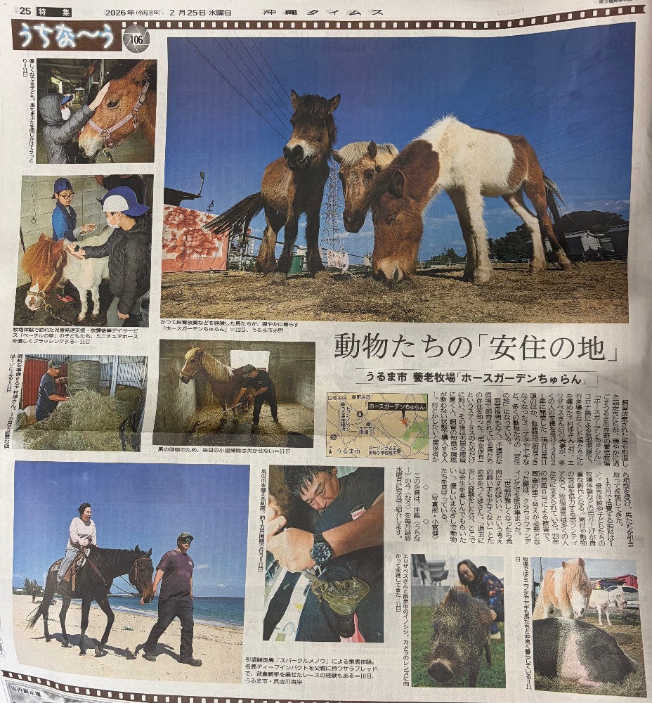 2/25、本日の沖縄タイムスに大きく掲載させていただきました。今月の初めに行われた三日間の密着取材で担当の方もどうぶつたちにメロメロになってしまうほど楽しいひとときを過ごし、とても有意義な時間を体験させていただけたこの機会に大変感謝しております。ぜひご興味ある方は本日の沖縄タイムスをご購読ください🙏🏻今回もちゅらんの活動が広く知られますように保護に専念して参りますので、これからも応援よろしくお願いいたします。